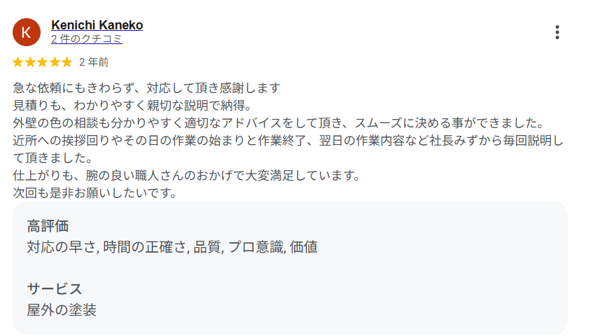 点数だけでなく、「丁寧」「話しやすい」「誠実」など、対応面の評価に注目すると安心です。